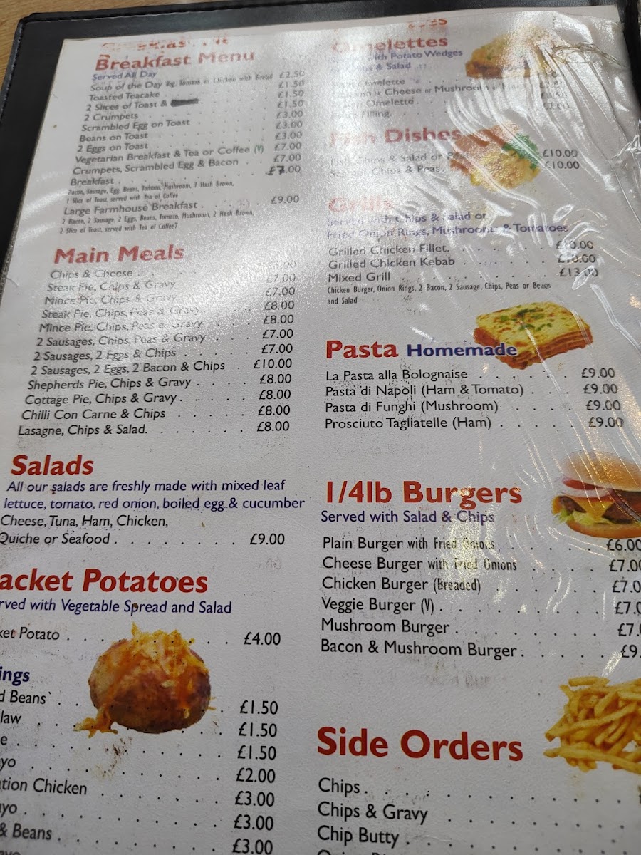 The Royal Cafe specializes in comfort food with a warm twist. Their extensive menu features an array of delicious options, from homemade pasta dishes like the La Pasta Alla Bolognaise and Pasta Di Funghi, all at an affordable £9.00, to tantalizing wraps such as the flavor-packed Chicken Tikka and the refreshing Tuna, Onion, Sweetcorn & Mayo. For families, there’s even a dedicated children's menu, making it a perfect destination for parents wanting to treat their little ones without stretching their budget.